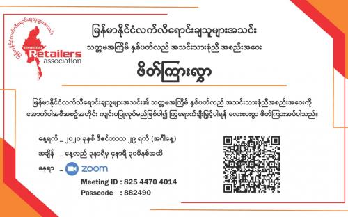 မြန်မာနိုင်ငံ လက်လီရောင်းချသူများအသင်း၏ သတ္တအကြိမ်မြောက် နှစ်ပတ်လည် အသင်းသားစုံညီအစည်းအဝေးကို အောက်ပါ