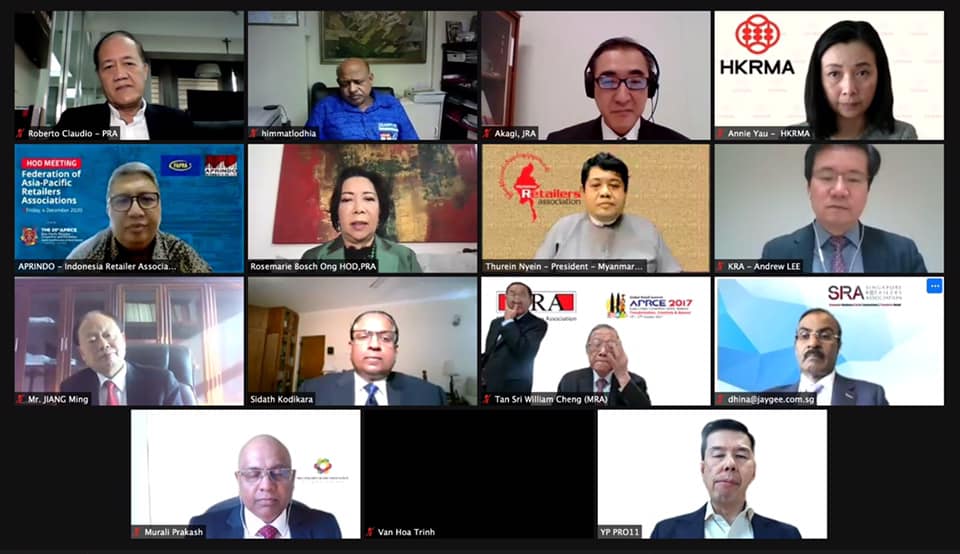 Federation of Asia Pacific Retailers Association - FAPRA ၏ နှစ်စဉ် ကျင်းပပြုလုပ်လျက်ရှိသော HOD meeting ကို Indonesia နိုင်ငံမှဦးဆောင်၍ ဒီဇင်ဘာလ (၄)ရက်နေ့တွင် virtual zoom meeting ဖြင့်ကျင်းပခဲ့ပြီး အဖွဲဝင်နိုင်ငံပေါင်း (၁၂)နိုင်ငံပါဝင်တက်ရောက်ခဲ့ကြပါတယ်။
