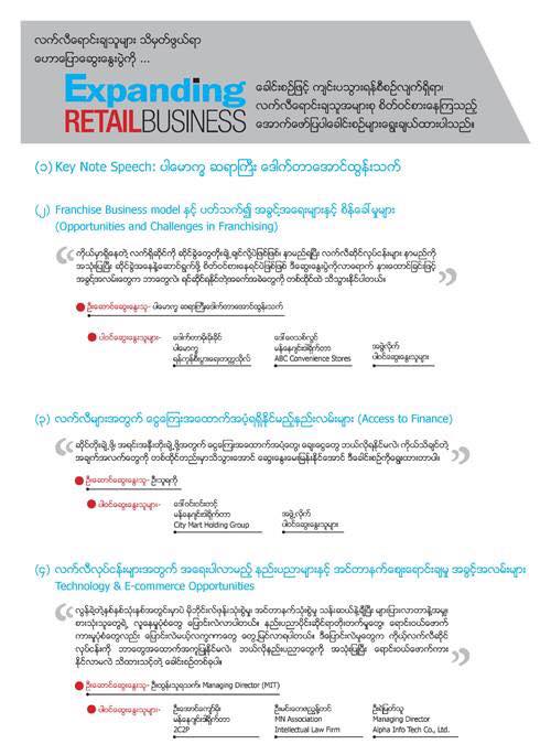 လက္လီလုပ္ငန္းလုပ္ကိုင္ေနၾကေသာ လက္လီလုပ္ငန္းရွင္မ်ား ၊ ဝန္ထမ္းမ်ားအားလံုးႏွင့္ စိတ္ပါဝင္စားသူ မည္သူမဆို တက္ေရာက္ႏိုင္ပါေၾကာင္း ဖိတ္ၾကားအပ္ပါသည္။