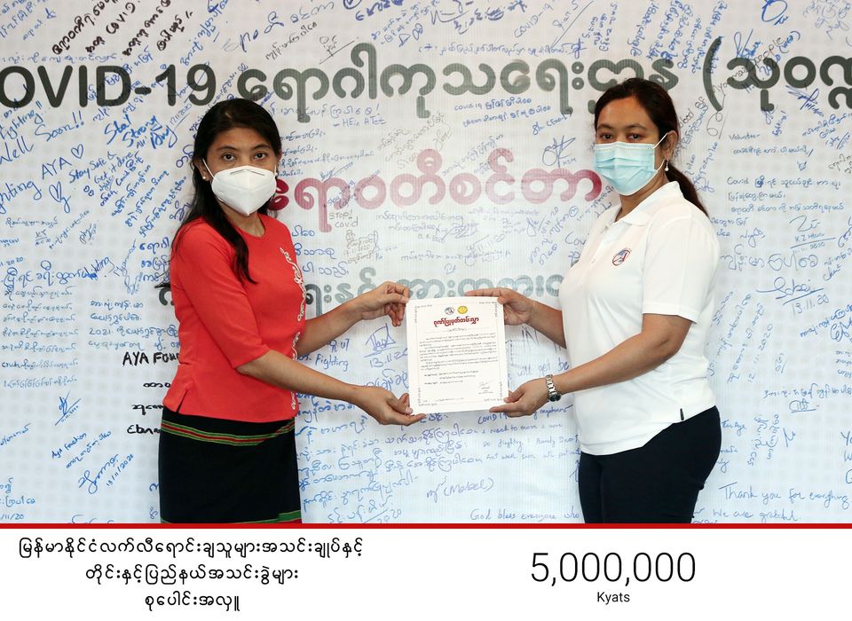 မွနျမာနိုငျငံ လကျလီရောငျးခသြူမြား အသငျးခြုပျနှင့ျ တိုငျးနှင့ျပွညျနယျ အသငျးခှဲမြားစုပေါငျး၍ ဧရာဝတီ ဖောငျဒေးရှငျး၏ COVID -19 လူနာမြားကို လကျခံကုသပေးလကြျရှိနသေည့ျ ဧရာဝတီစငျတာ( ရနျကုနျ ) အတှကျ အလှူငှကေပြျ သိနျး ( ၅၀ ) ကို စတေနာထကျသနျစှာဖွင့ျ ပံ့ပိုးကူညီ လှူဒါနျးပေးခဲ့ပါသညျ။