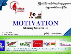 Myanmar Retailers Assocation - Mandalay Region မွ ႀကီးမွဴးျပဳလုပ္ေသာ MOTIVATION ေခါင္းစဥ္ျဖင့္ Sharing Session 4 ႀကိမ္ေျမာက္ကို ၃-၇-၂၀၁၆ ရက္ေန႕ မနက